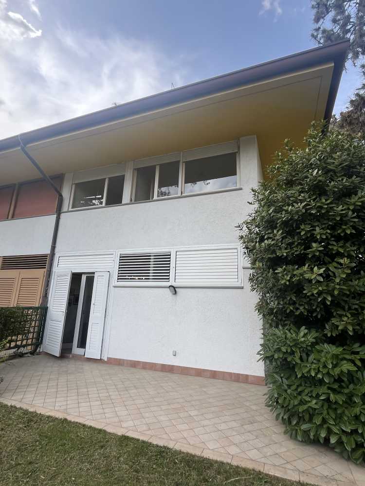In contesto silenzioso a poca distanza dal mare, nel cuore di pineta, bifamiliare di testa terra cielo con giardino annesso sviluppata su due livelli.