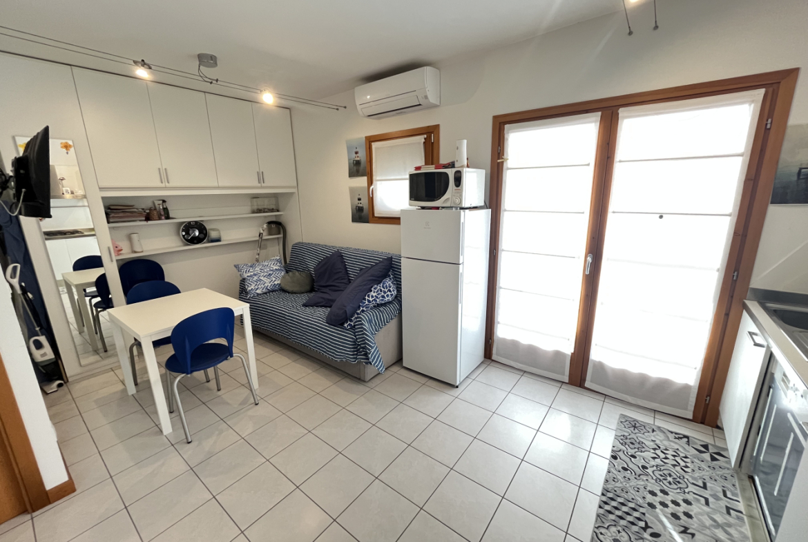 L’appartamento rimodernato, raggiungibile da scala esterna è composto da: ingresso, soggiorno/cucina, doppio angolo divano letto retraibile, bagno con box doccia, boiler, lavatrice, terrazzo semi abitabile, posto auto in uso esclusivo.