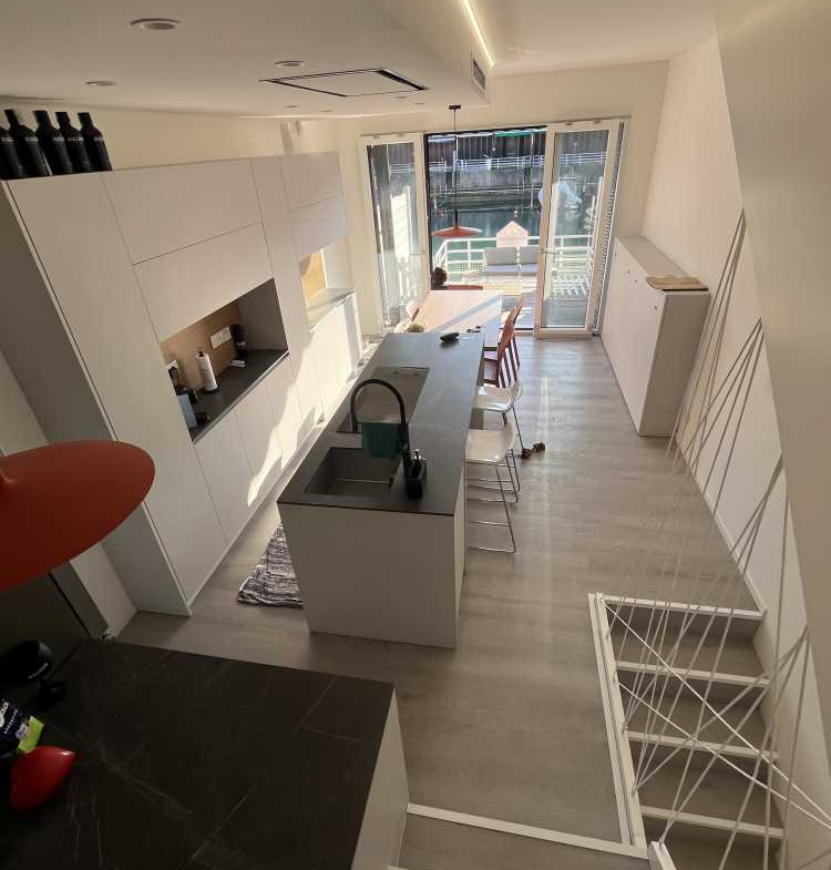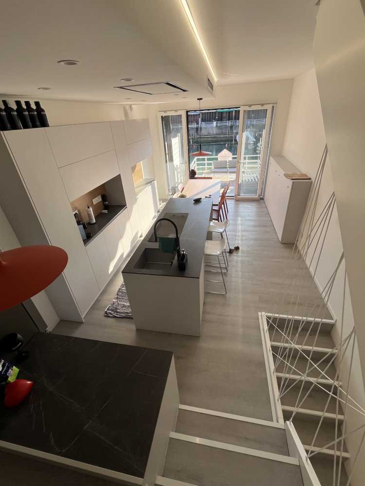 L’unità su tre livelli, collegata da scala interna è composta da: ingresso autonomo a codice a distanza, ampia zona giorno con terrazzo abitabile prospiciente al posto barca privato di 11,50x4m, zona soggiorno/tv separata su altro livello, al piano due camera padronale con ampio bagno con box doccia e soffione, ulteriore camera matrimoniale con bagno privato al piano terzo.